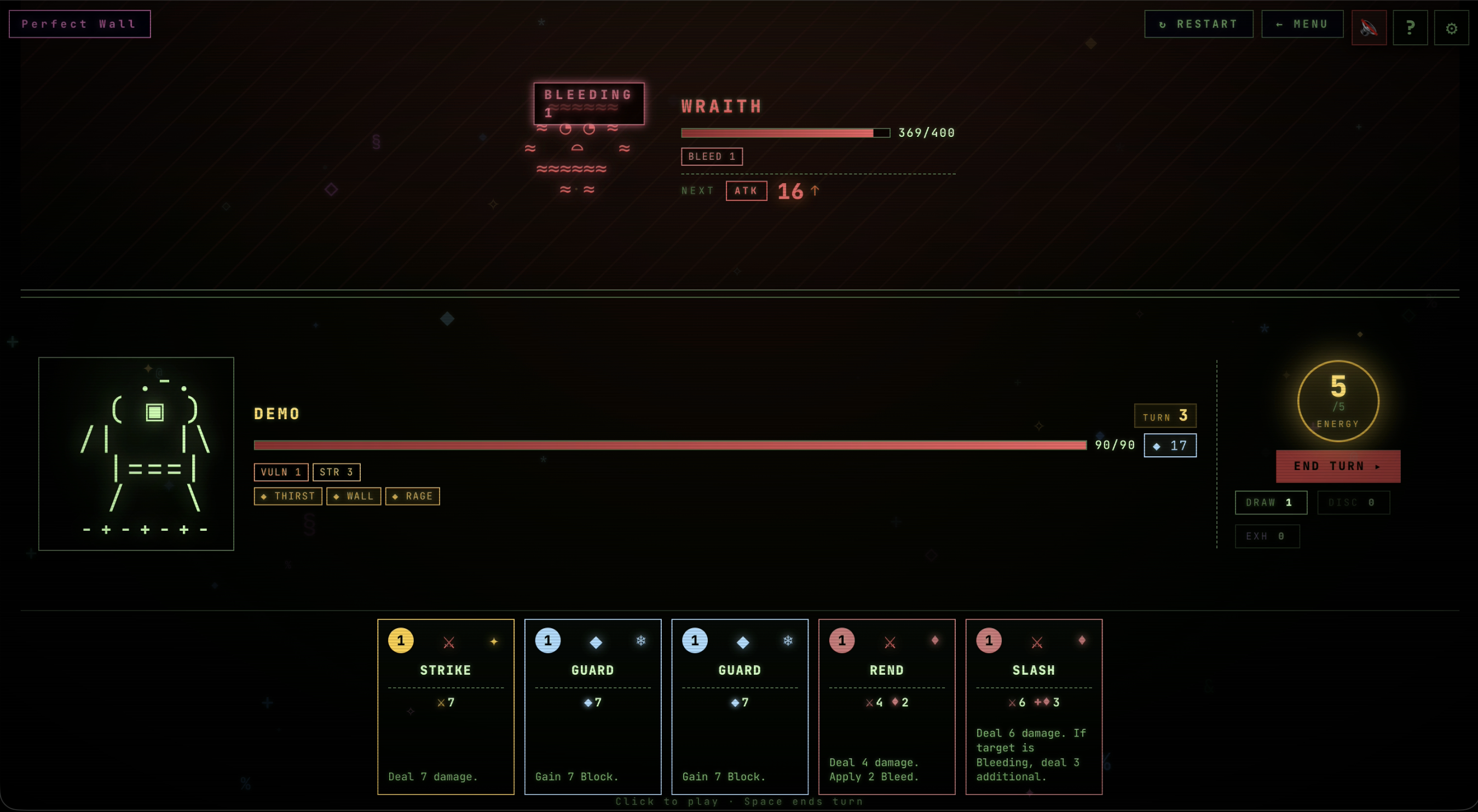 Space · E | end turn |