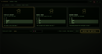 - Three classes — Templar Knight (steel & oath), Runic Mage (one syllable cracks a hill), Shadow Rogue (home is outside the firelight).
